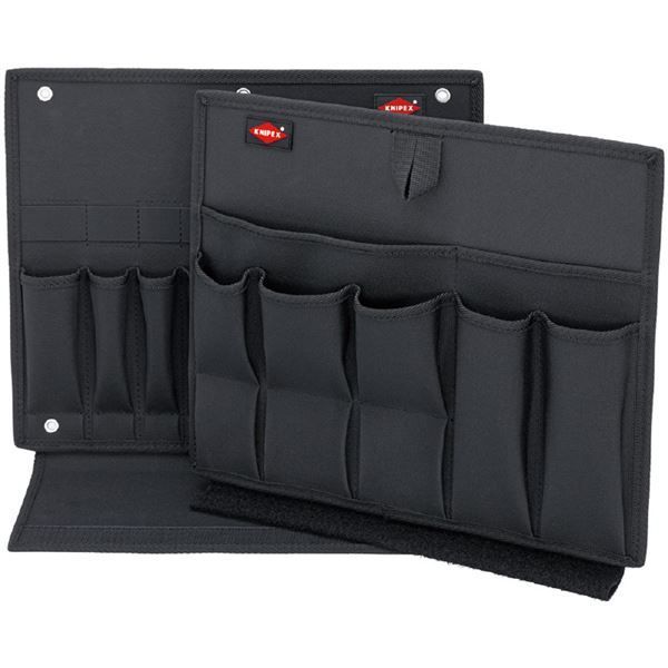 ●頑丈なポリエステル繊維を使用した2つの部分からなるツール収納パネル付き。