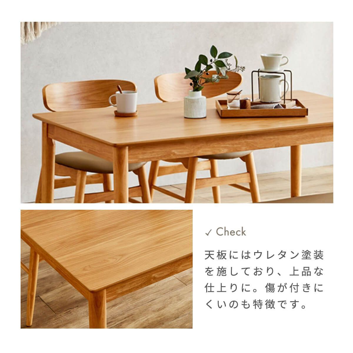 ダイニングテーブル 木目 オーク おしゃれ 北欧 丸み 食卓テーブル 4人用 シンプル 4本脚 軽量 コンパクト ファミリー 新生活 ナチュラル 傷に強い 安全 木製 幅135 商 中 才 6