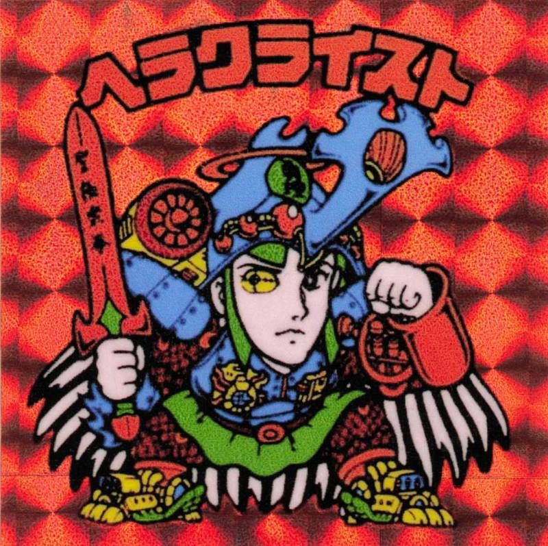 ヘラクライスト 赤 無印 裏台紙 黄 文字 黒 引き物 駄菓子屋