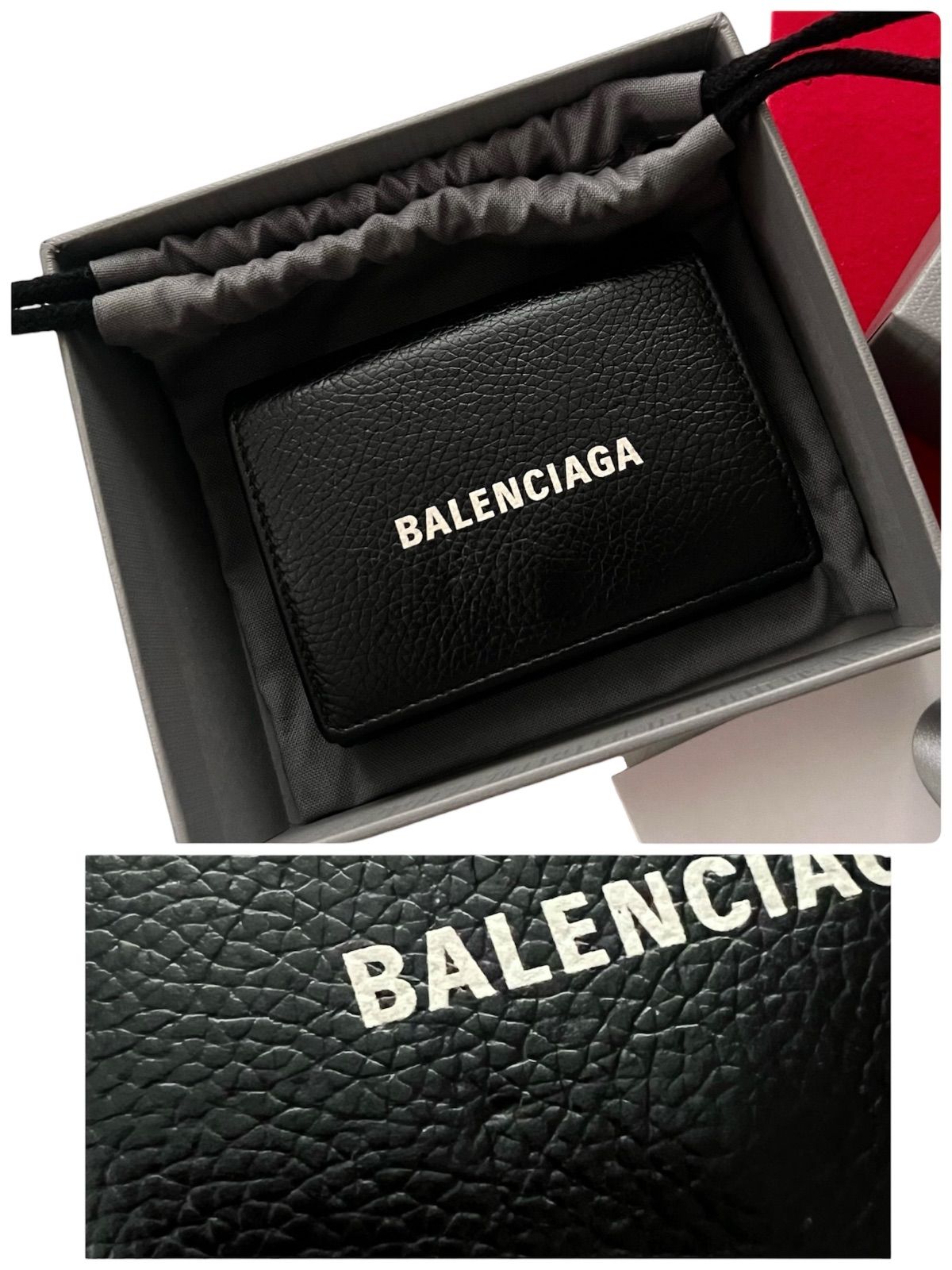 BALENCIAGA バレンシアガ 財布 ミニウォレット 折り財布 黒 ブラック 本革 レザー コンパクト 箱付 ロゴ シリアル有 鑑定済み 男女兼用