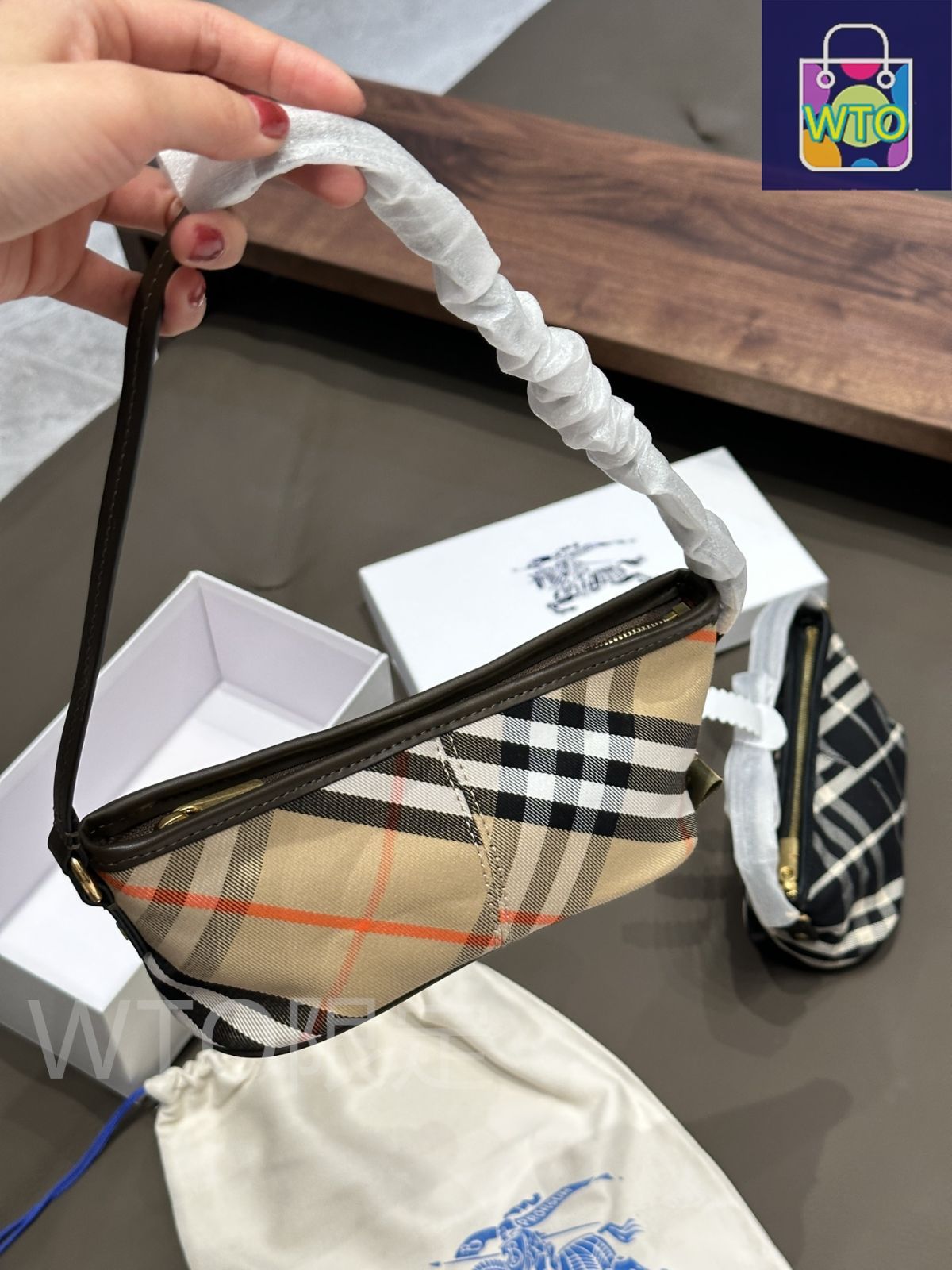 今日 Burberry バーバリー 新款格子模様ジャカードミニアームバッグ 格子模様ジャカード-WTO輸入2