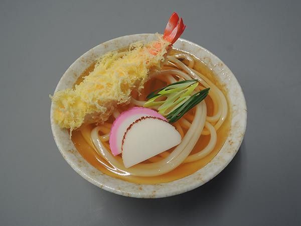 透き通る出汁に、美味しそうに揚がった海老がのった天ぷらうどんです!お部屋のインテリアや、定食屋さんのディスプレイ用としてもおすすめです♪※職人手作りのため、形状や色味、風合いは写真と若干異なる場合がございます。また、食品サンプルと丼鉢は接着されておりません。