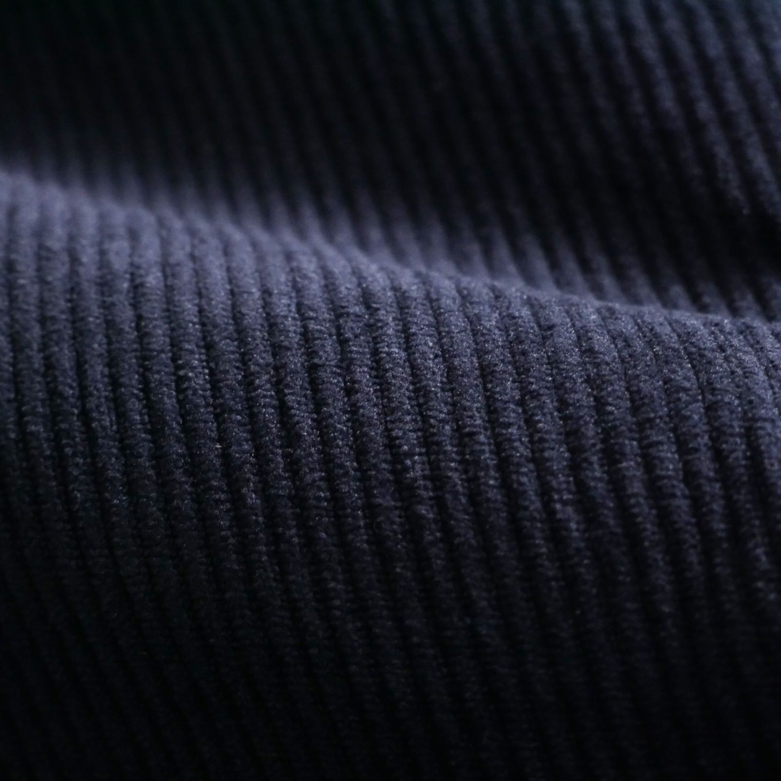 ●上品な畝が特徴の細畝コーデュロイ生地を使用し、柔らかな質感としなやかなドレープ性を兼ね備えた上質な仕上がりです。適度な厚みを持ちながらも軽やかで、秋冬シーズンに快適な穿き心地を実現しております。見た目にも高級感がありながら、動きに合わせて自然な光沢を放つ素材感が、洗練された印象を与えます。