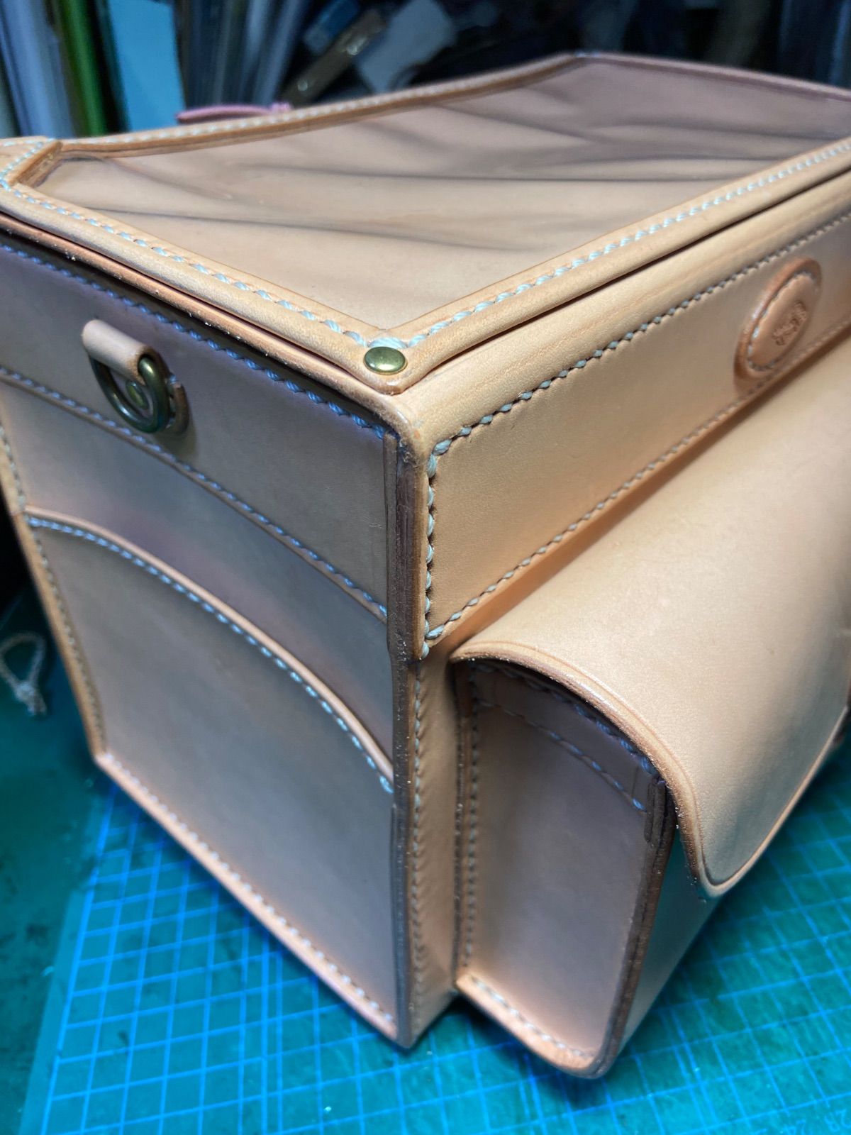 金具は全て無垢の真鍮製です。革の角は落とし、断面及び裏面(床面)は仕上げ剤で磨いています。