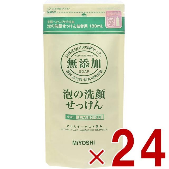 商品名:ミヨシ 無添加 泡の洗顔せっけん つめかえ用 180ml ミヨシ石鹸 詰替用 詰め替え 泡の 洗顔 石けん 24個