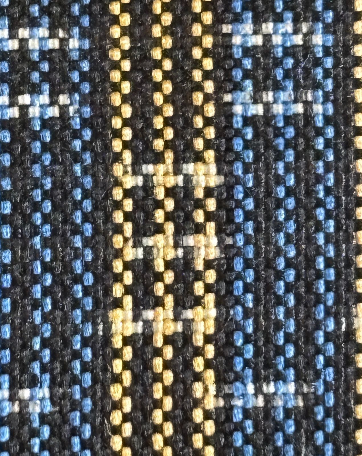 大島紬の絣の細かさを表す単位で、絣自体は一元絣(手裏剣マークのように絣が交差して織られた絣)と、カタス絣(Tの字のように織られた絣)があります。
