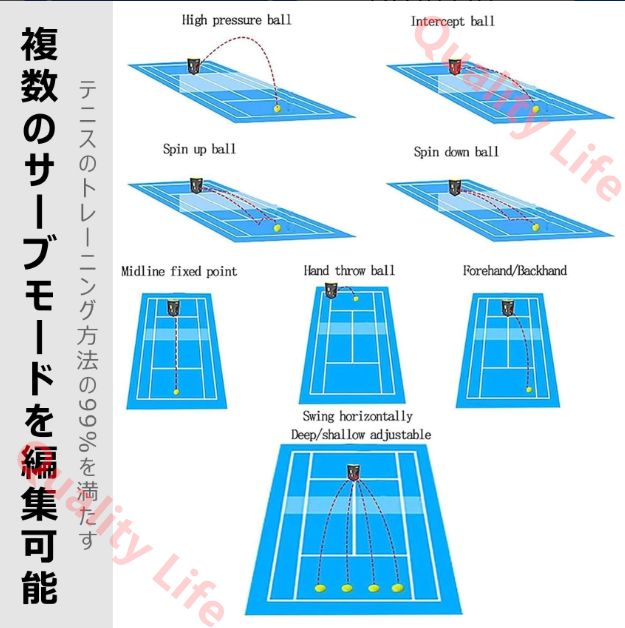 リモコン+APP制御:リモコンとAPP制御のデュアルモードで、周波数、速度、回転、深さ、ランダムなどの自分に合ったモードを自由に調整し、挑戦の難易度を高めます。 ハンドスロー、ハイプレッシャーなベースラインボレー、マルチボール水平ラインを模倣します。