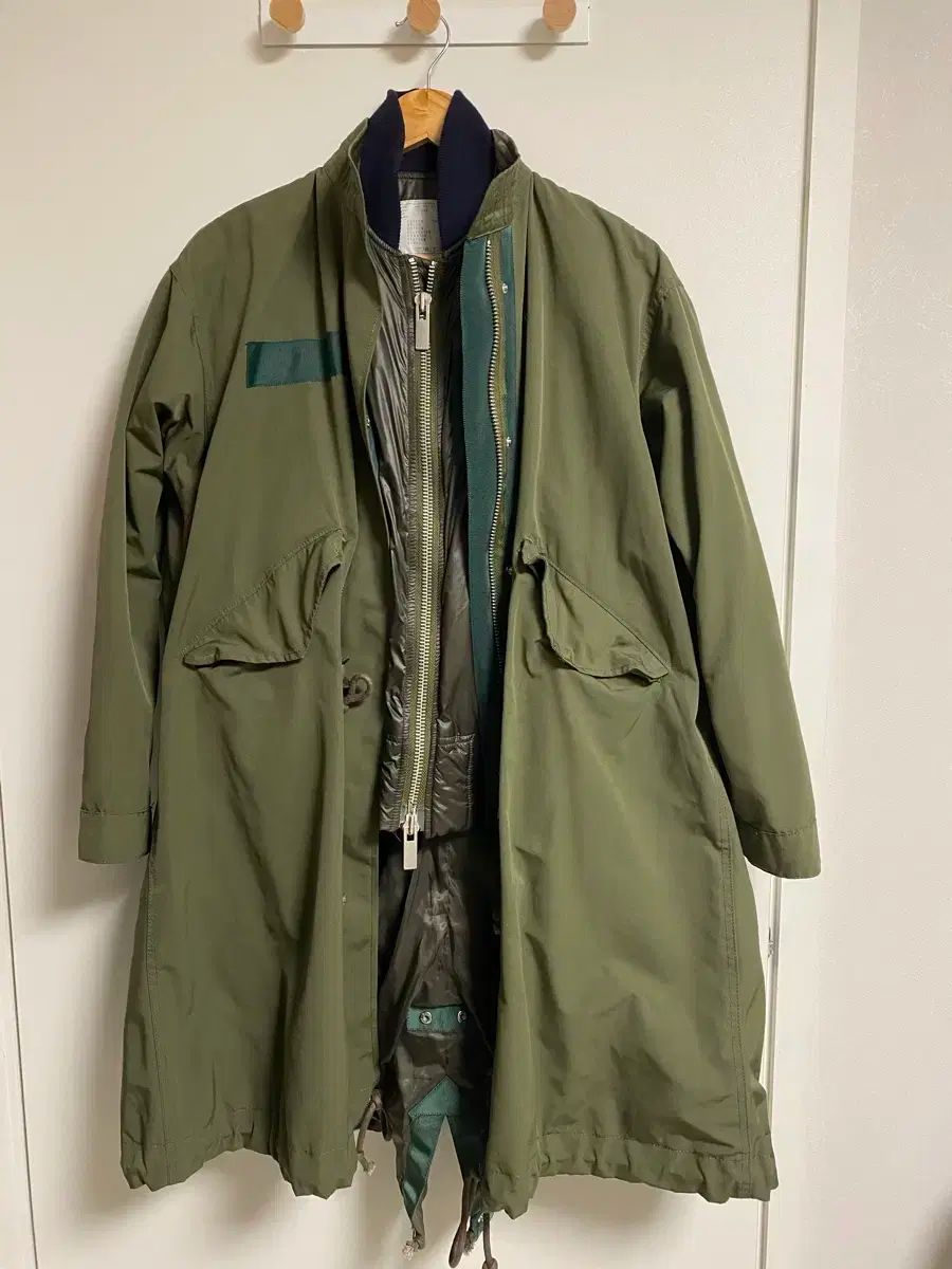 カーキ色 SACAI マウンテンパーカー 軽量ダウンジャケットです。中に薄いダウンが付いています。