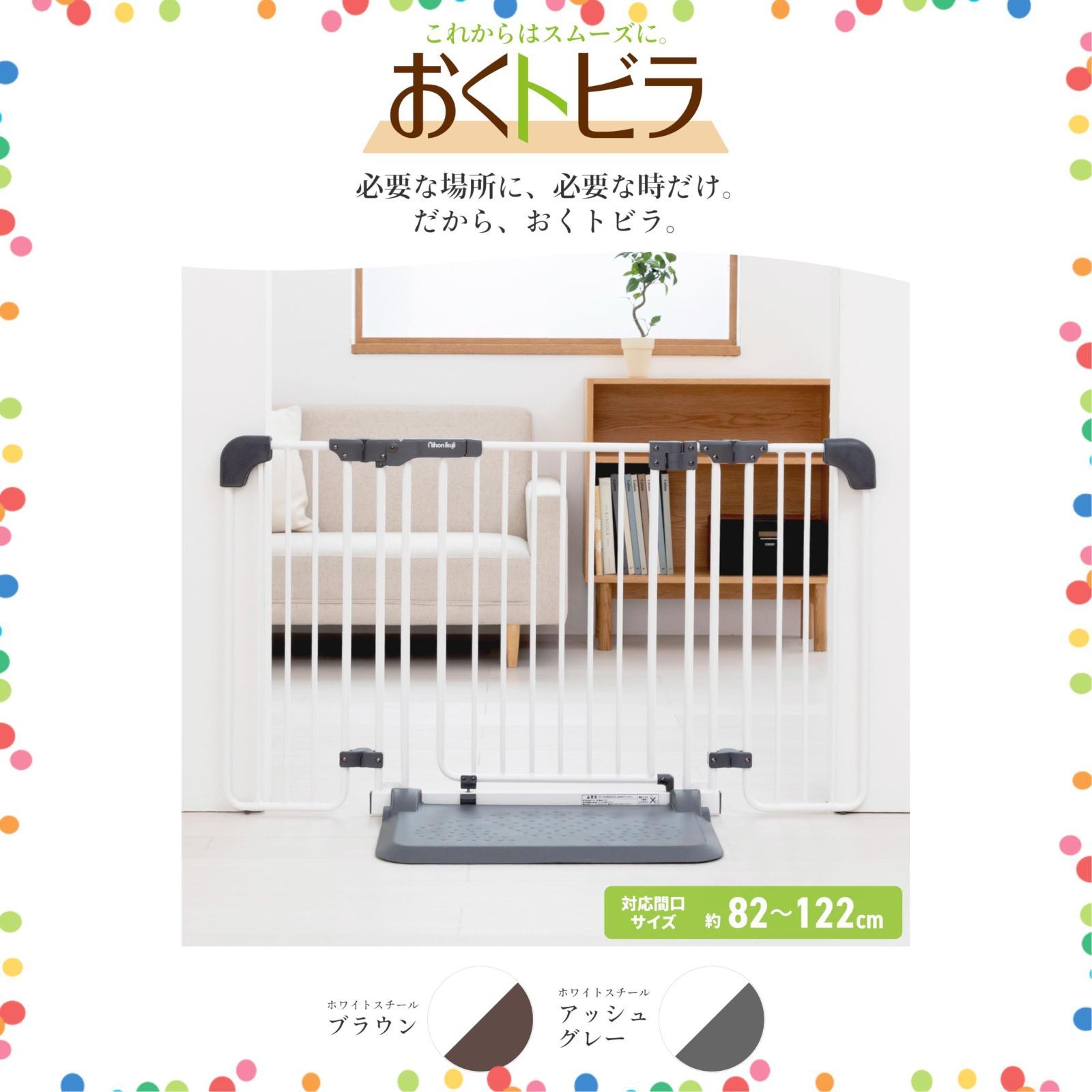 おくだけ簡単設置の ドア付きベビーゲート Sサイズ おくトビラ ホワイトスチール ブラウン 日本育児