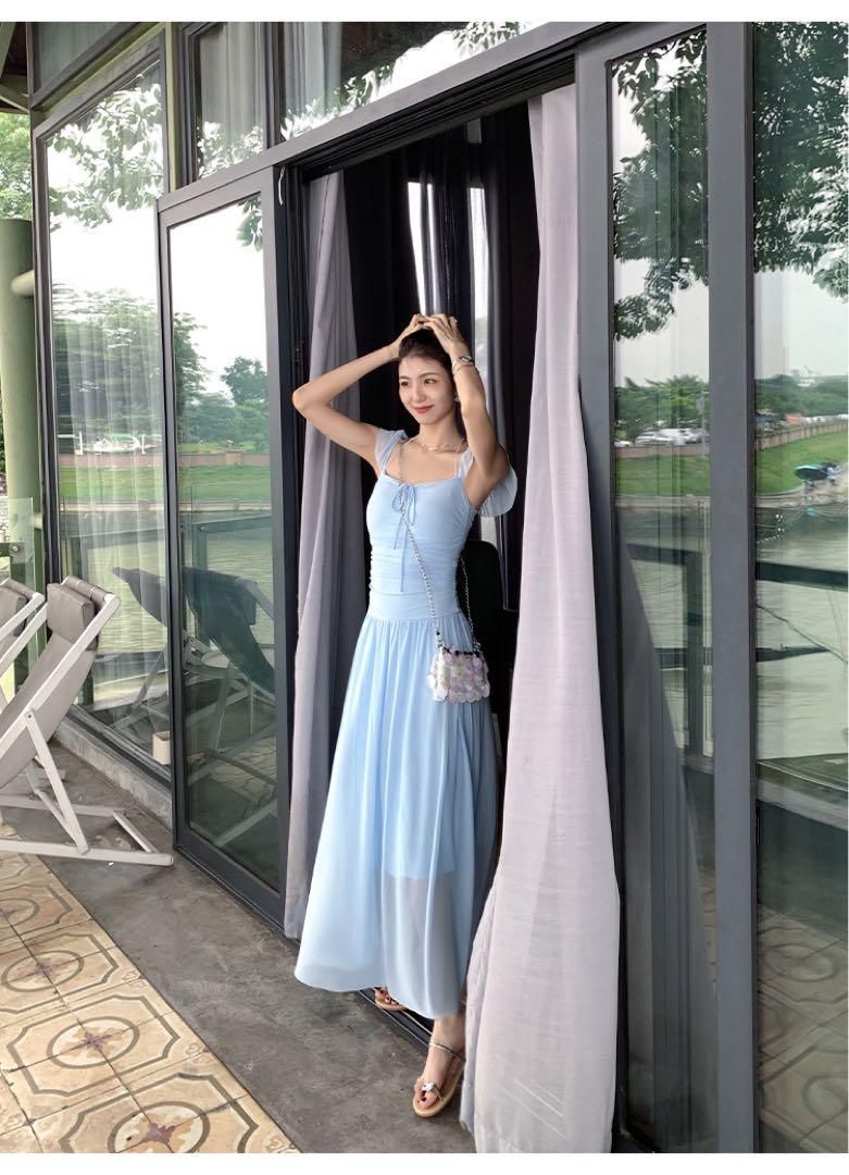 春のスクエアネックスカートモテ服ロングワンピ上品セクシー高見えアイテム