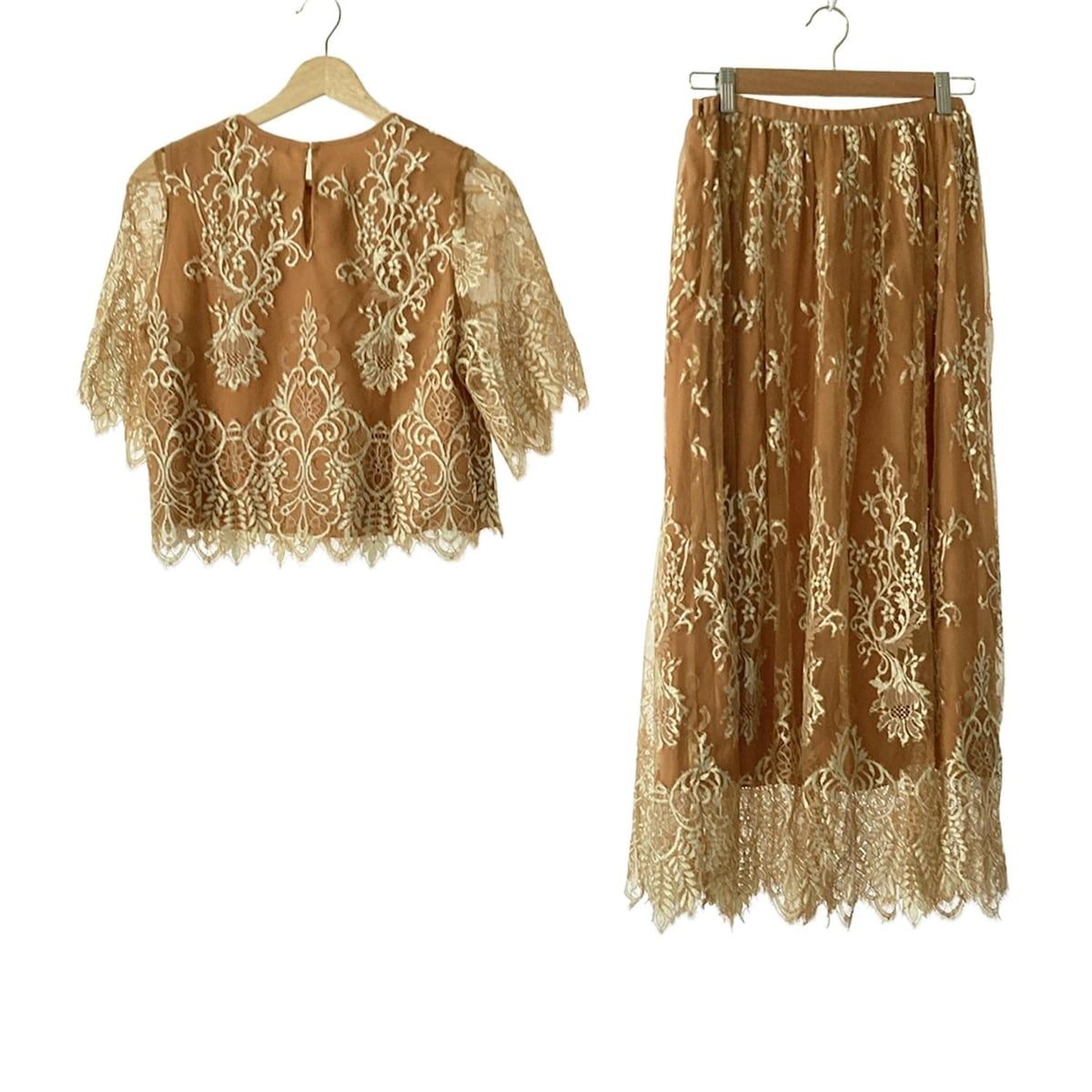 FRAY I.D フレイアイディー スカートセットアップ レディース - ブラウン×アイボリー 花柄 レース