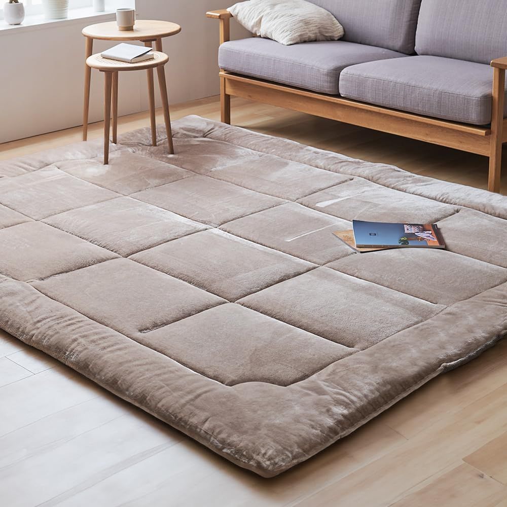 裏面にズレ防止の滑り止め加工つき、ホットカーペットや床暖房と一緒に使えます。