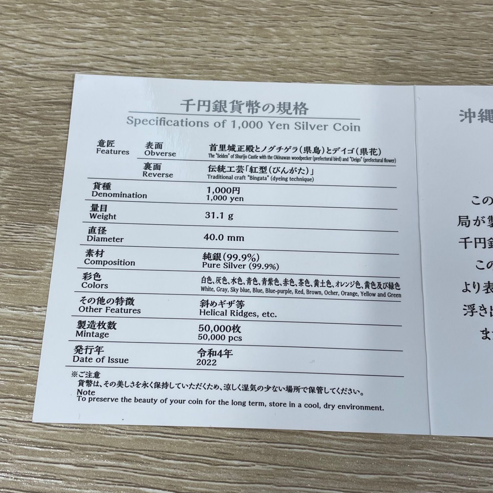 復帰50周年記念 千円銀貨幣