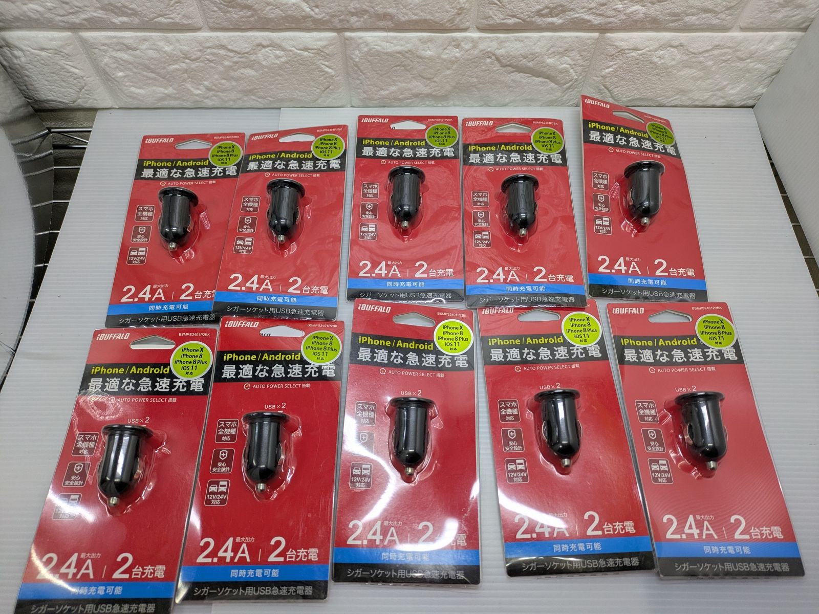 セット BUFFALO USB充電器 2.4 A 急速充電 黒 転売 2ポートタイプ ブラック スマホ充電器 シガーソケット 車
