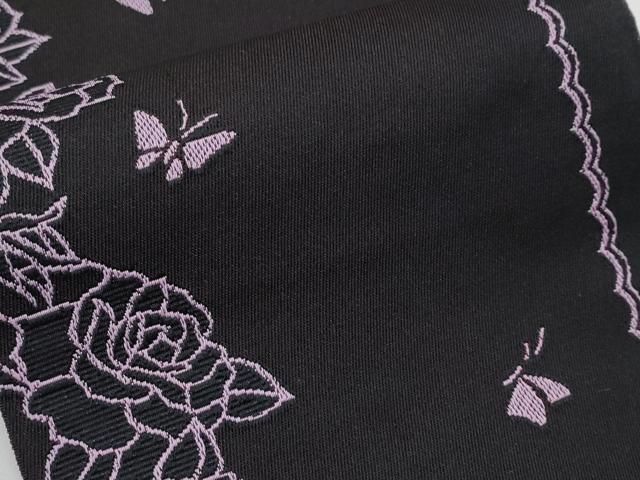 平和屋着物 上 半幅帯 猫 蝶 薔薇 黒紅色地 s 5
