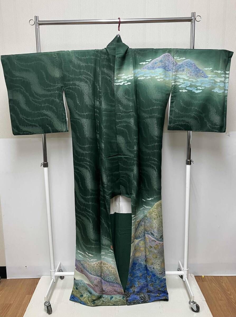 着物 吉野一廉 辻が花 訪問着 正絹 京友禅 よしのひとかど 緑