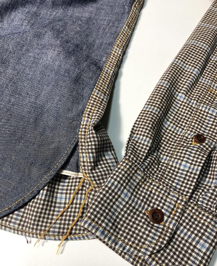 ブラウン系チェック柄xデニム/シャンブレー(画像を参考にお願いします)