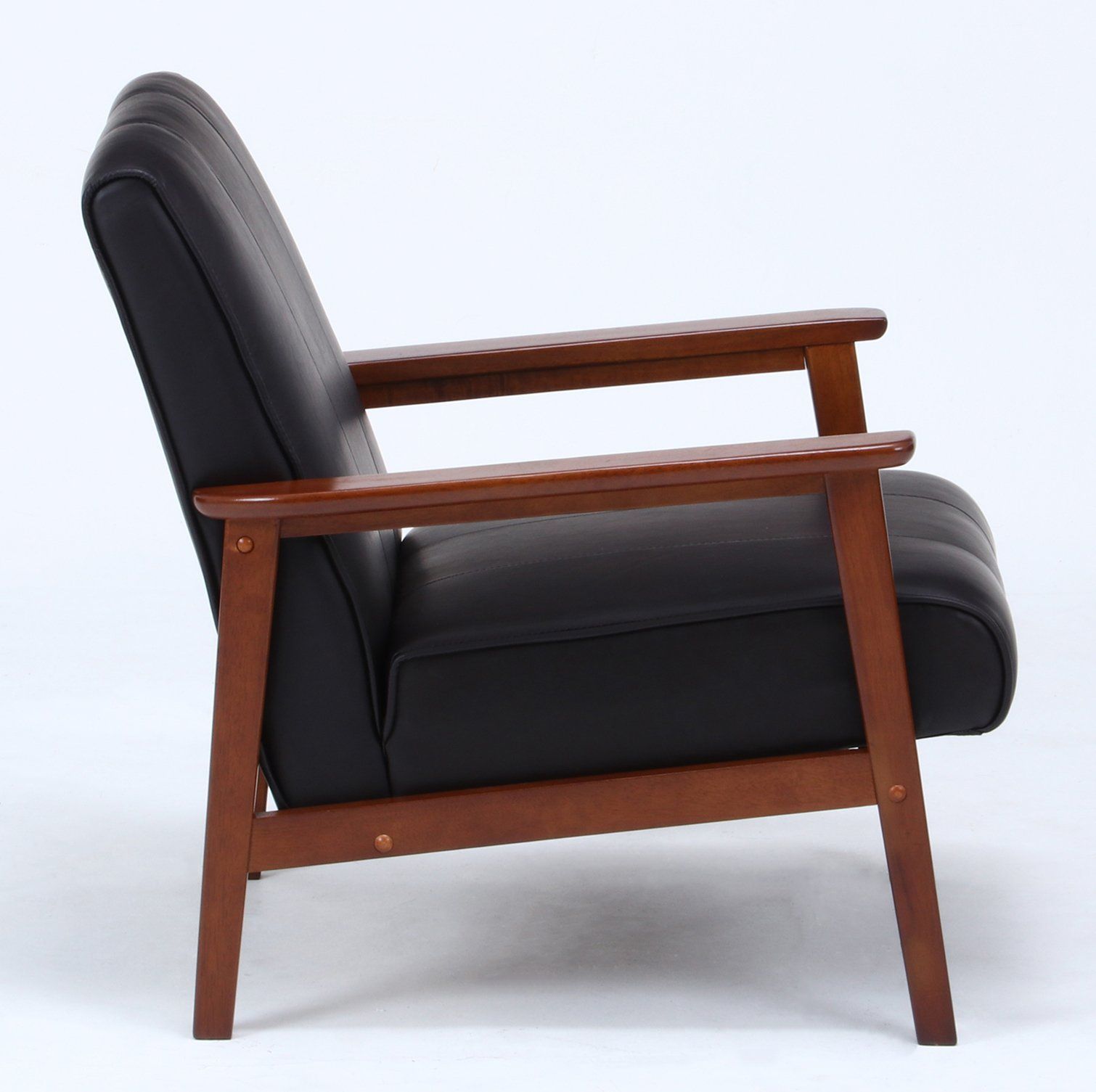 一人掛け ソファー 肘付き 幅65×奥行72×高さ69 cm 1人掛け ダークブラウン PU 合皮 ソファ 天然木 お掃除ロボット通れる レトロ 不二貿易 ラバーズ 77123