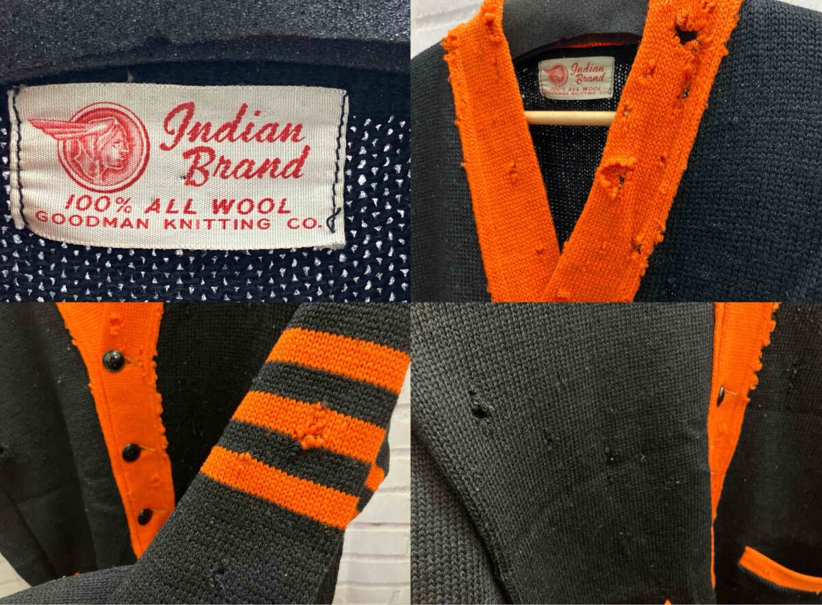 INDIAN BRAND インディアン ブランド カーディガン レタードカーディガン ボロ グラン 40 s 50 古着 ブラック