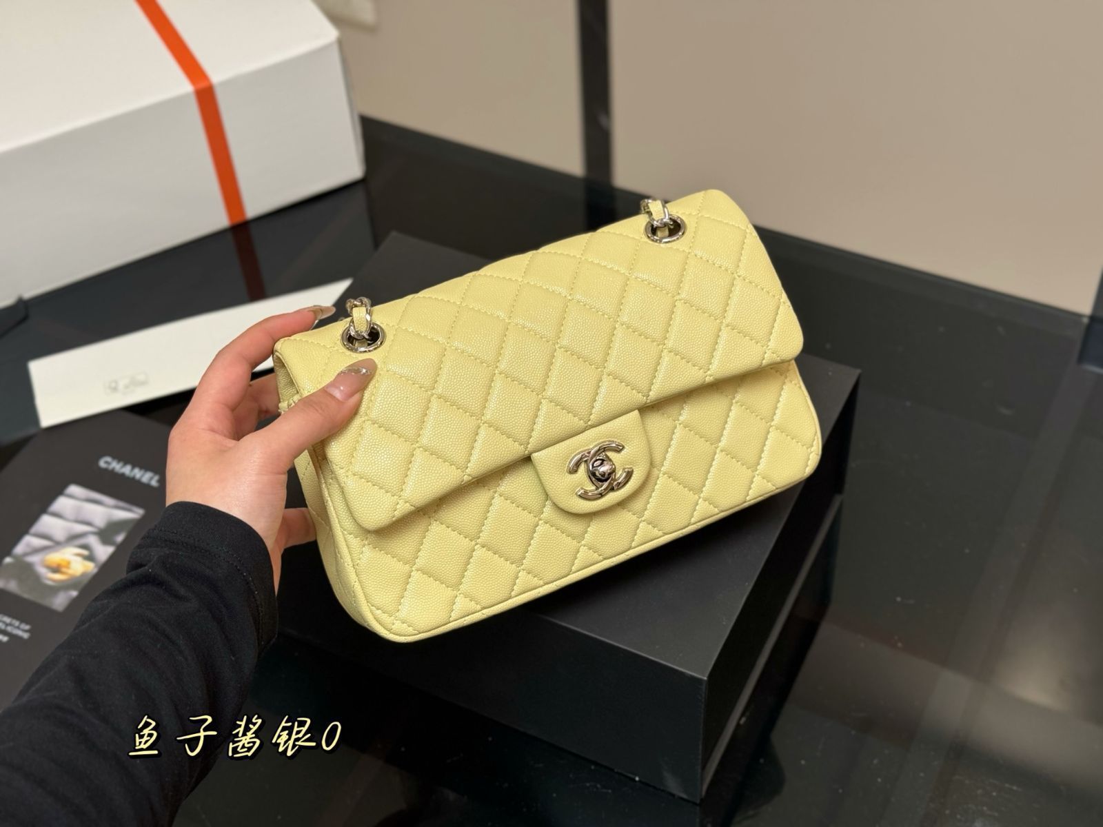 この CHANEL CF バッグは、「カビア」素材を使用したトップグレードの逸品です。滑らかで柔らかな質感と丈夫な耐久性が特徴的で、四季を問わず使えるマストアイテムです。サイズは 23cm で、バランス良く、財布・スマホ・化粧品など日常必需品を余裕を持って収納できます。