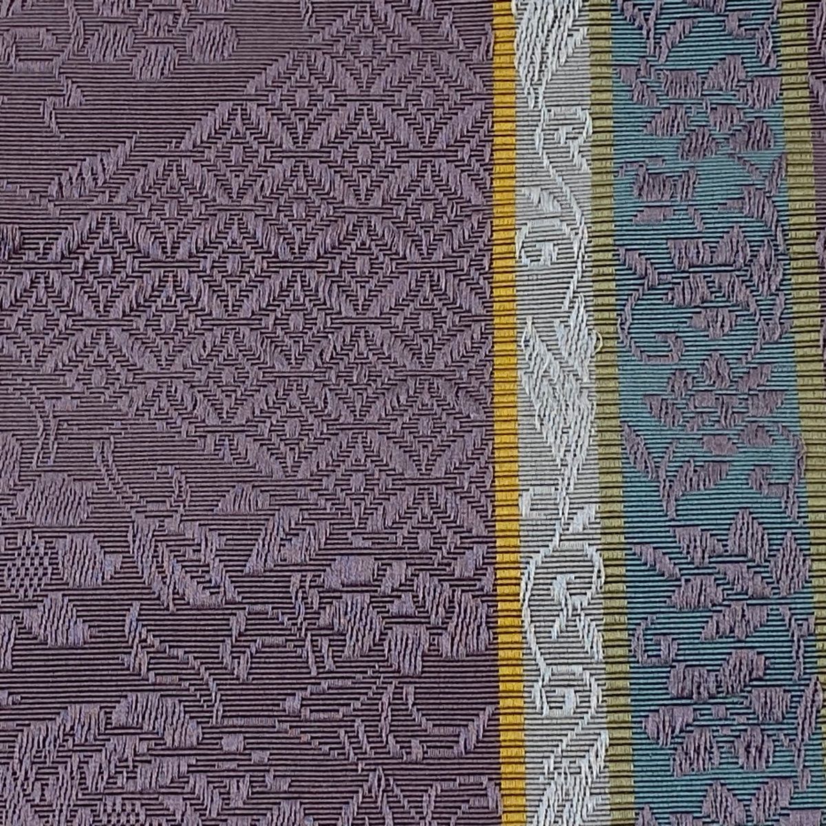 半幅帯 博多織 証紙有 縞 花唐草 灰紫 正絹