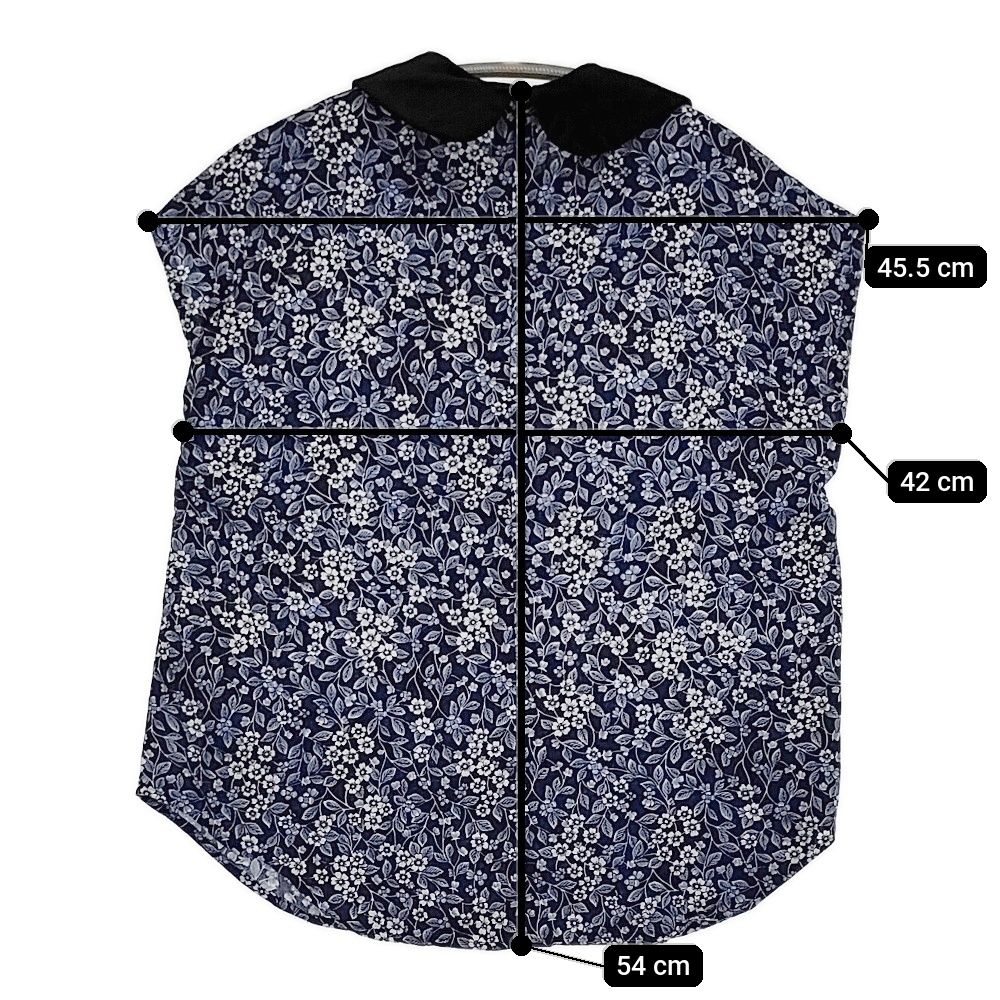 R-D.M.Co- アイリッシュ ラウンド ノースリーブブラウス S 花柄 ネイビー ホワイト レディース マンズテーラー 5-0908