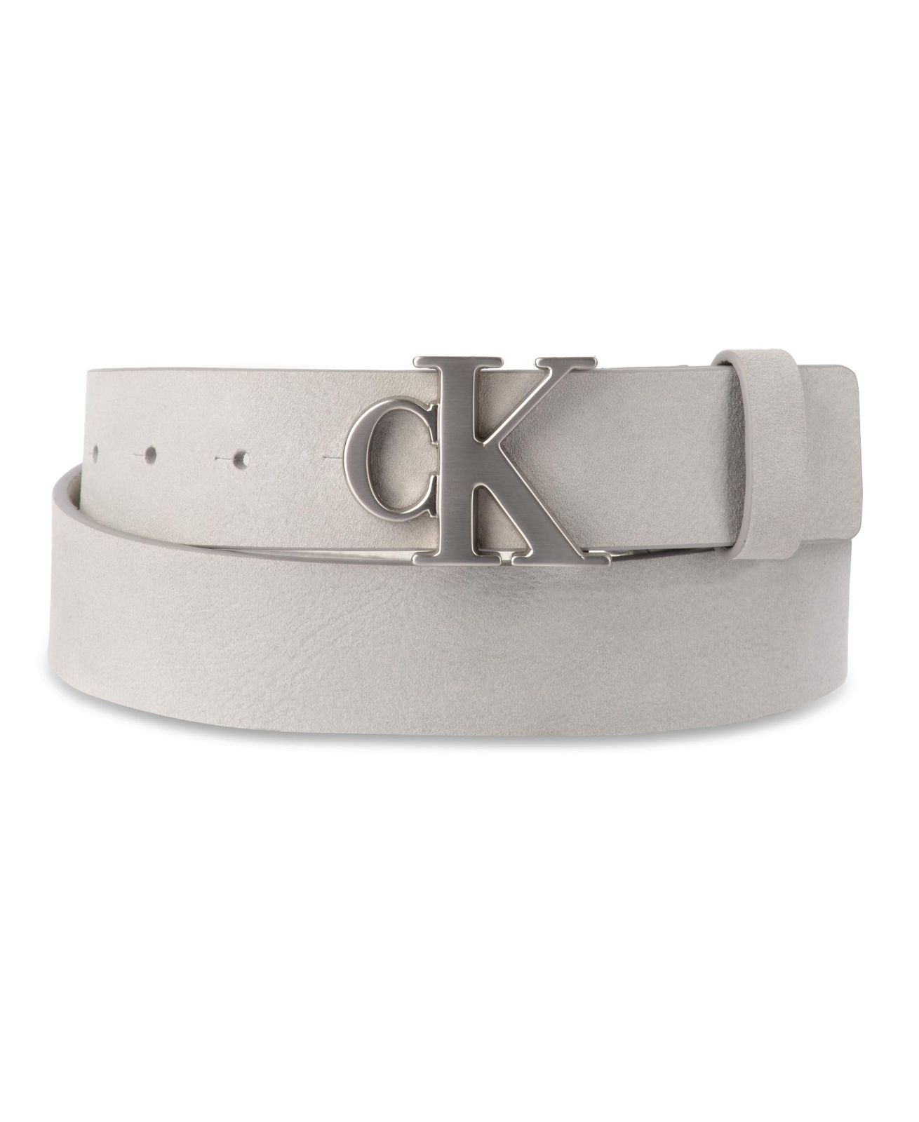 Calvin Klein メンズ カジュアル CK モノグラム カットアウトバックルベルト ライトグレー Large 38-40