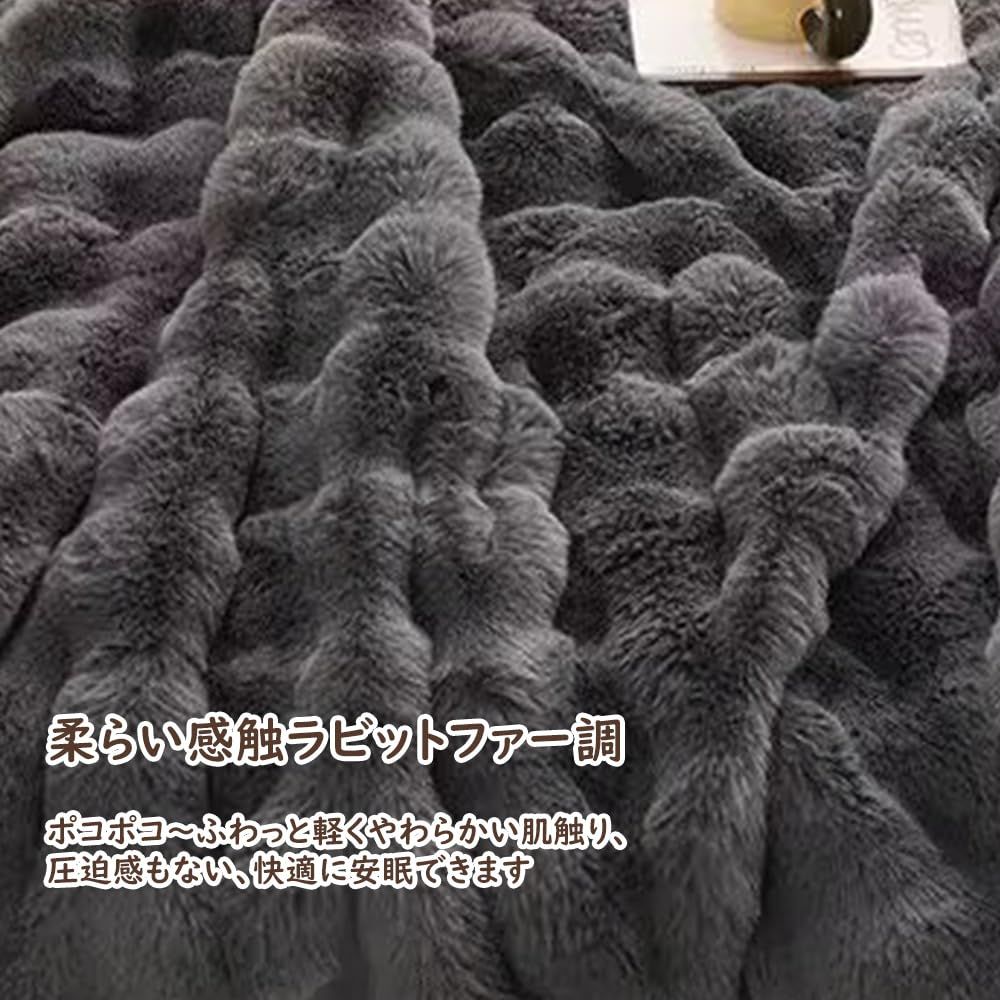 【ラビットファー調二枚合わせ毛布】表裹もラビットファー調生地(表側長い繊維、内側短い繊維)を重ねている二枚合わせ毛布、表地と裹地の間に空気層ができ、温かさをしっかりキープできます。他社のミンクファー調生地加工より暖かい!ラビットファー調加工、高級感up、保温性良い、おしゃれなお部屋を演出してくれ、寒い冬でも暖かくお過ごしいただけるブランケットです。