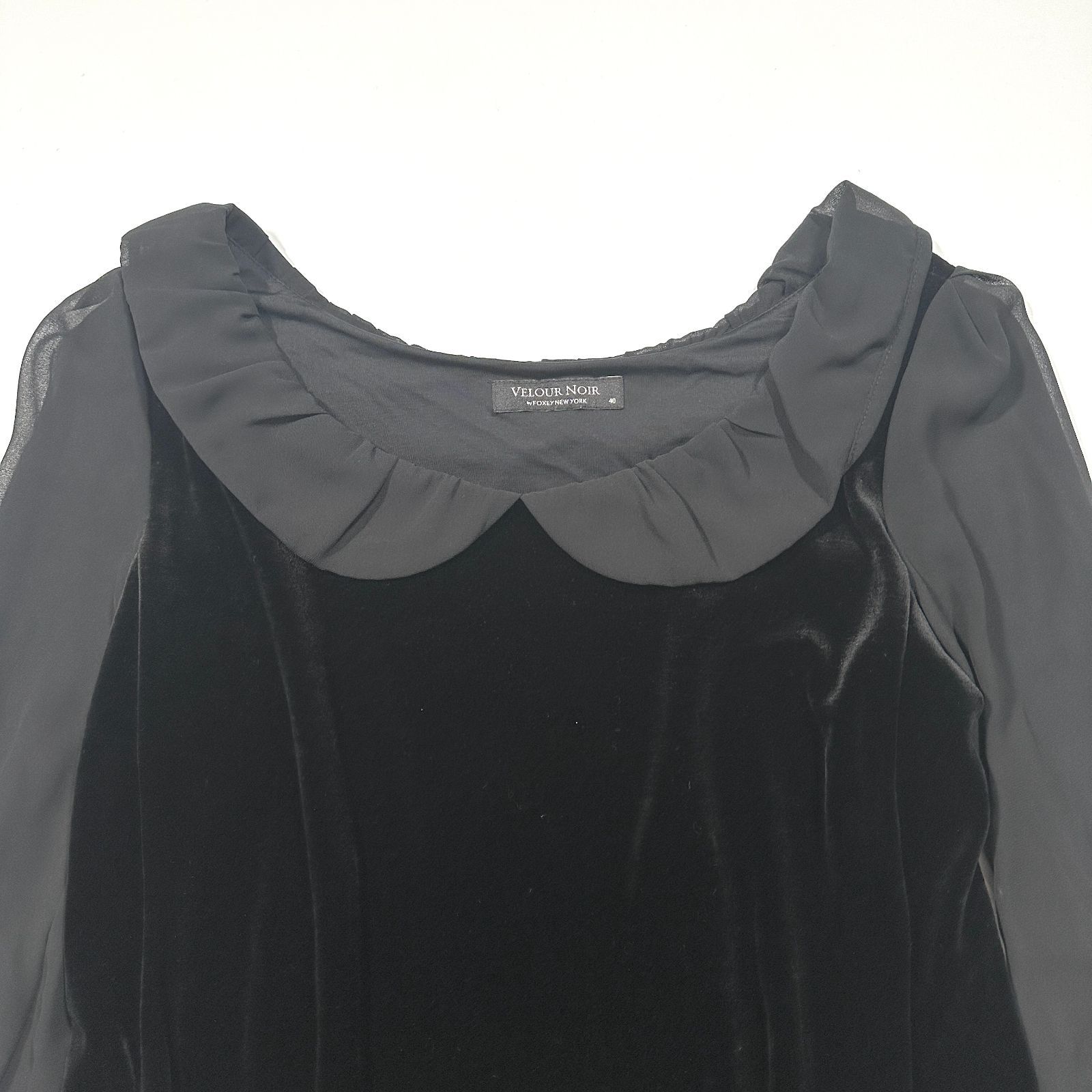 VELOUR NOIR ベロアノワール FOXEY NEWYORK ベロア ワンピース シースルー フリル襟 26865- ブラック 40 Lサイズ