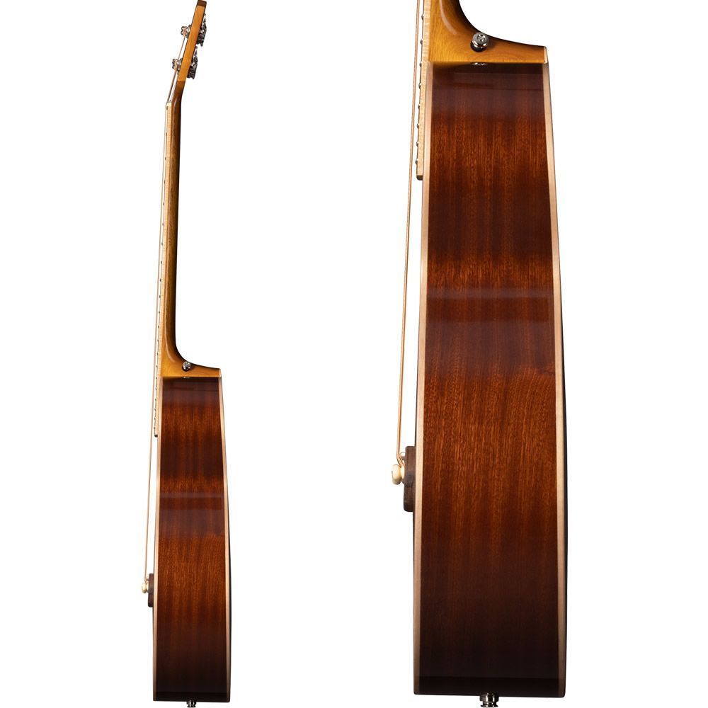 ソリッド・シトカスプルース・トップ、レイヤード・バック&サイドが最高のトーンを生み出し、ミディアムC プロファイルをもつ30.5 インチ・スケールのマホガ ニー・ネックは快適な演奏性をもたらします。