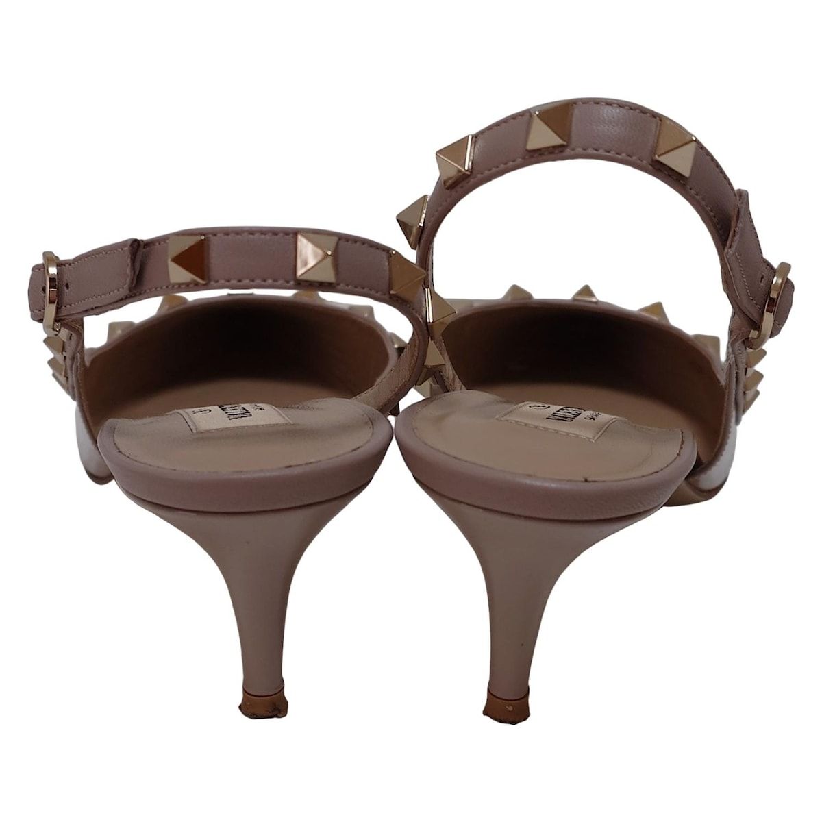 バレンチノガラバーニ サンダル 38 1 2 レディース - ピンクベージュ スタッズ レザー