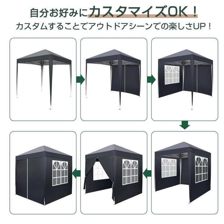 TOPAIM ワンタッチ タープテント 2m×2m サイドシート4枚付き グレー 3段階調節 イベントテント 収納バッグ付き スチール 大型 耐水