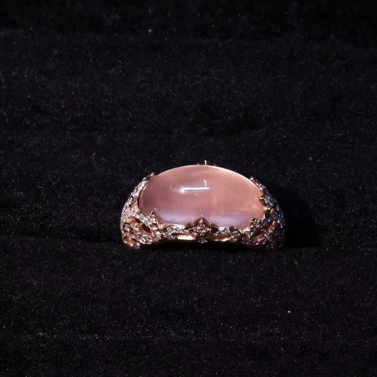 ローズクォーツ6.5 ct ダイヤモンド0.62 リング 750 12号 -X 10001