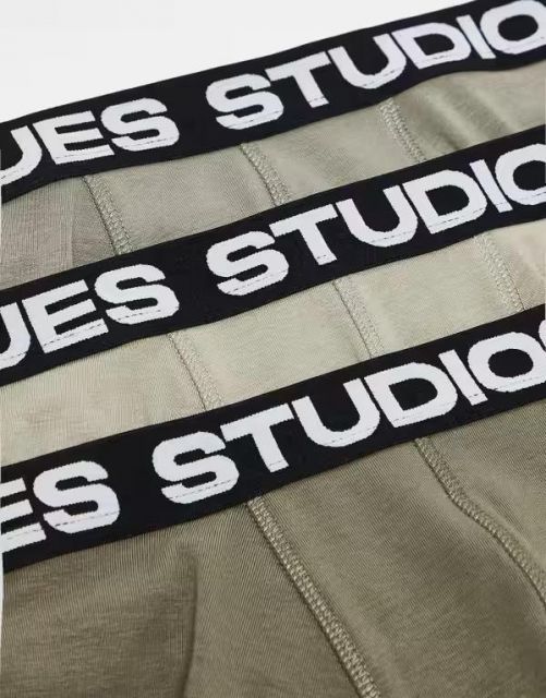 ASOSDESIGN3packbriefswithprintedwaistbandinkhaki