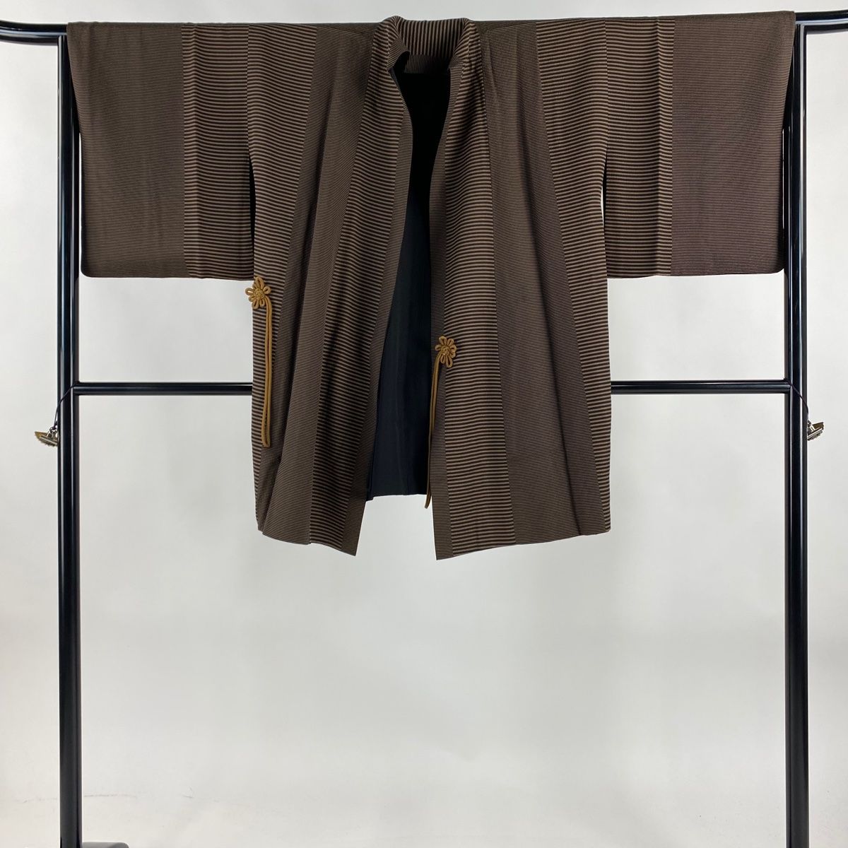 道中着 身丈87.5 cm 裄丈65 M 和装コート 縞 茶色 正絹 秀品