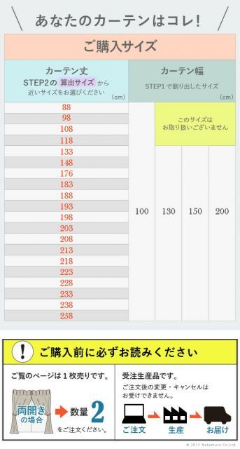 >幅100cm/丈88〜133cm>幅100cm/丈148〜258cm
