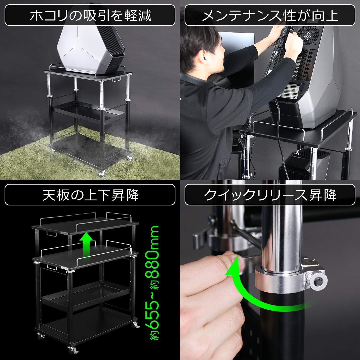 ゲーミングPCを目線の高さに設置する昇降式ワゴン