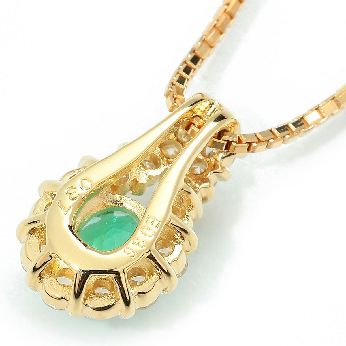 エメラルド 0.36 ct ダイヤモンド 0.37 イエローゴールド K 18 YG ペンダントネックレス プレラブド