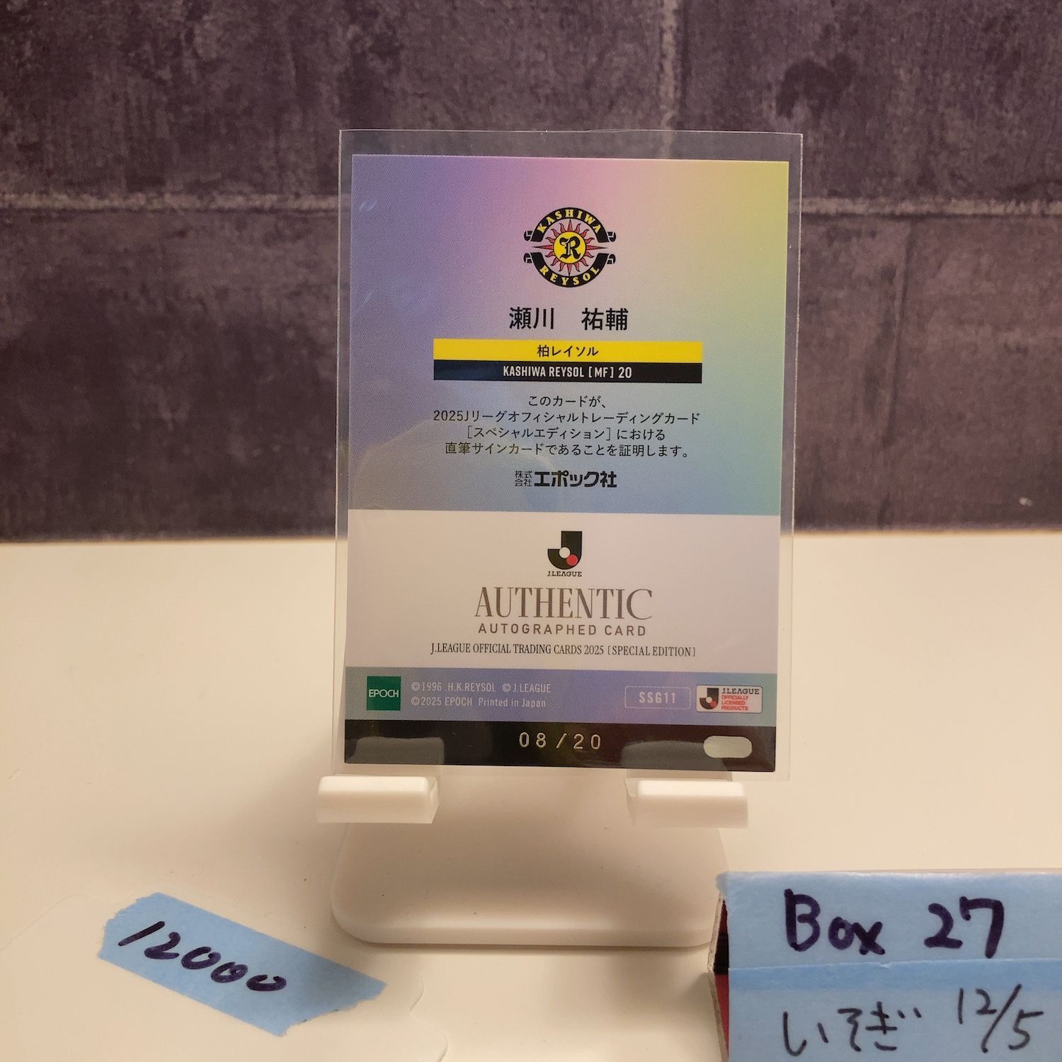 2025 EPOCH J.League 瀬川祐輔 08/20 直筆サインカード 柏レイソル