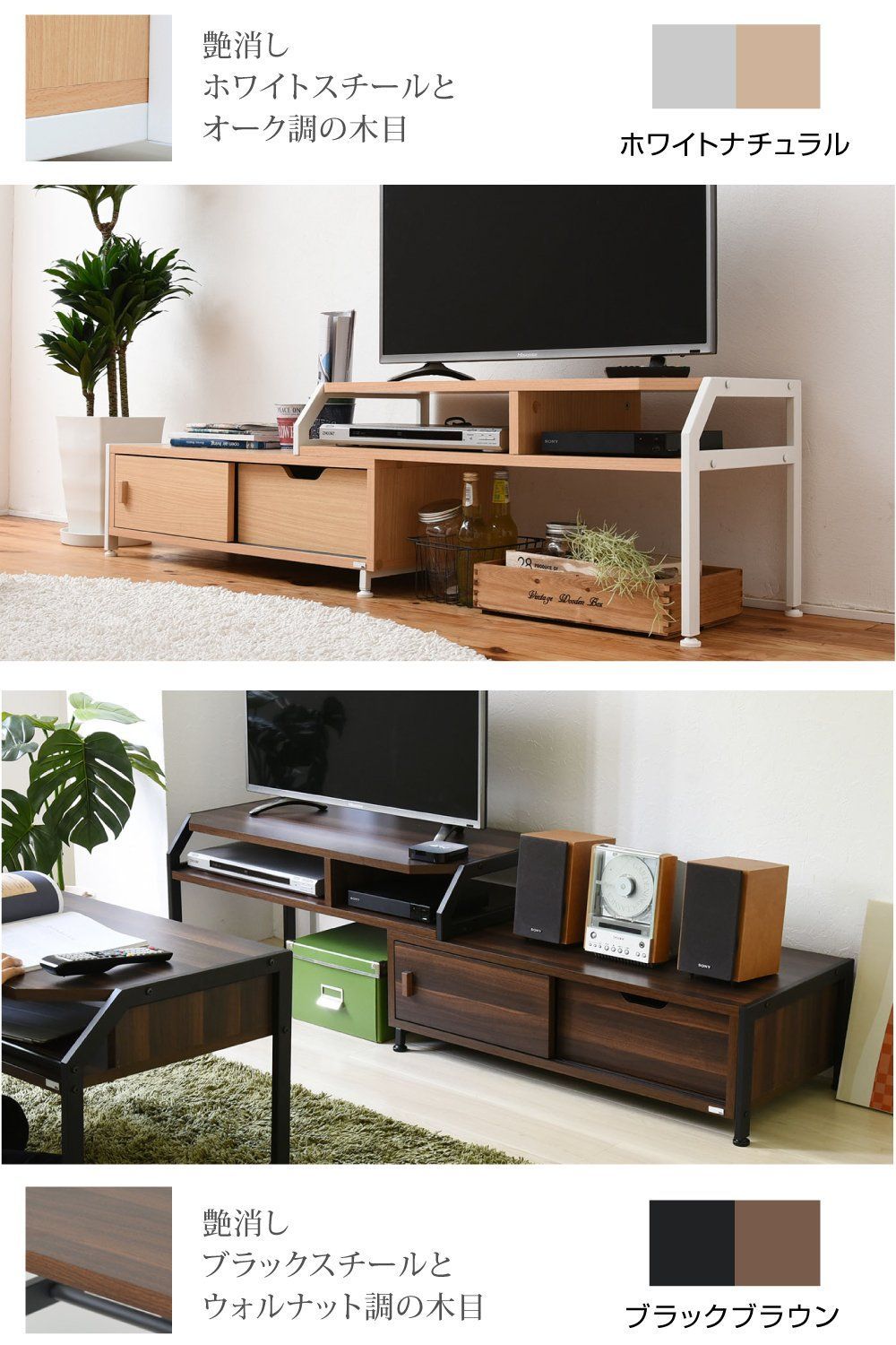 JKプラン Rita テレビ台 ローボード 伸縮 コーナー 北欧 おしゃれ デザイン モダン テレビラック ミッドセンチュリー ブルックリンスタイル 幅87~159 DRT-1010-BK