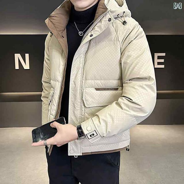 商品名:秋冬 コーデ メンズ 服 シンプル ファッション オシャレ 大人 かっこいい 大きいサイズ ストリート 紳士服 カラー ダウン ジャケット 冬 ハイエンド フード付き 防寒 服 厚手
