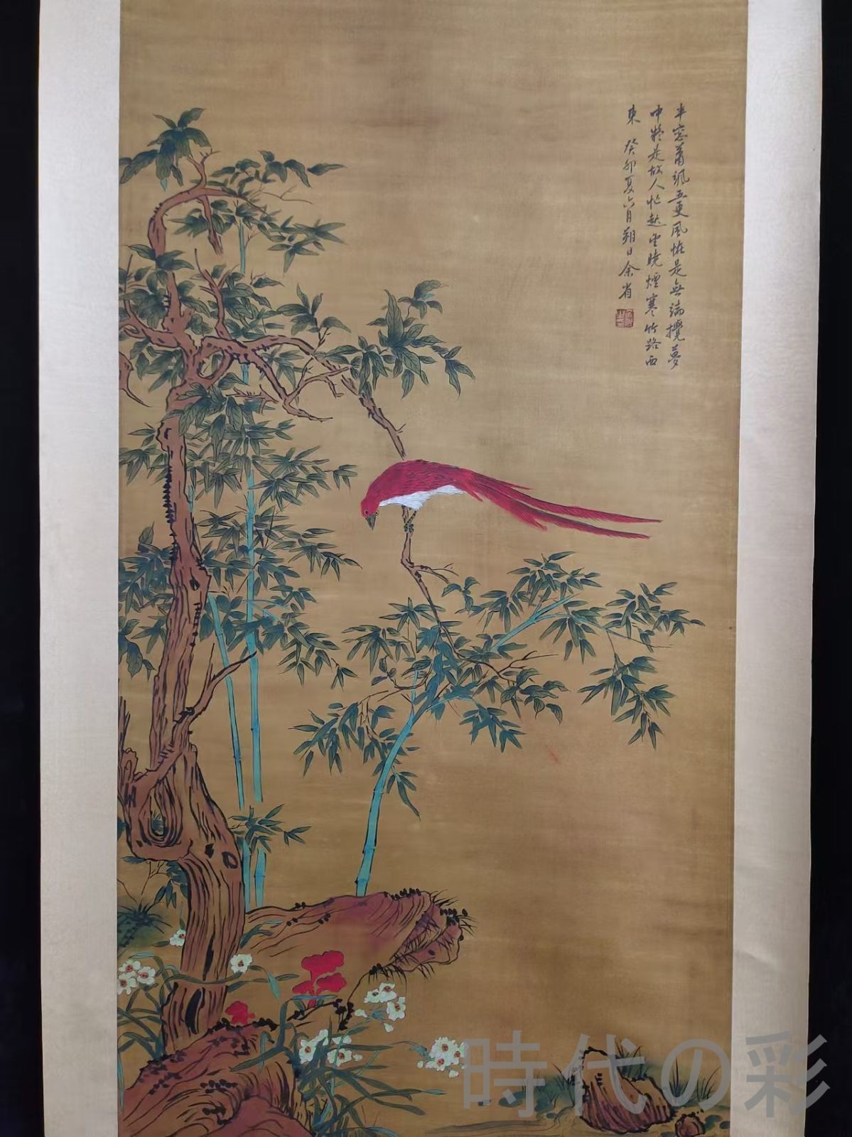中国古美術 清代 余省 花鳥図 絹本 四尺 手描き 掛け軸 巻き物 書画 山水 花卉 中堂画 装飾画 唐物 肉筆 古玩 旧家蔵收 時代画家