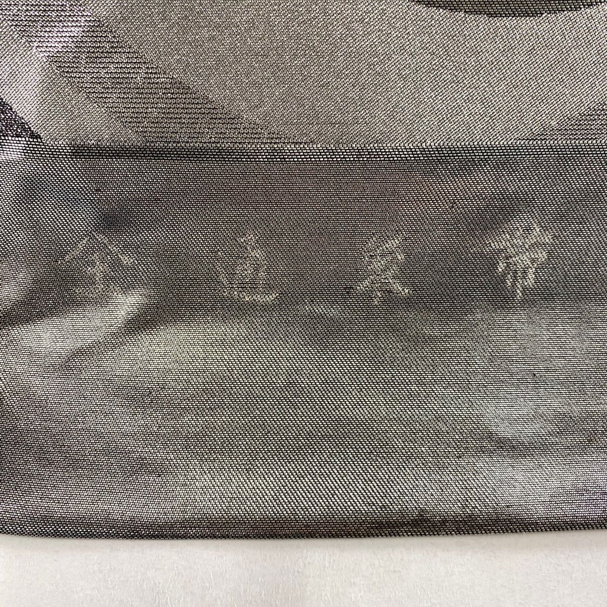 袋帯 秀品 証紙 幾何学模様 銀糸 箔 銀色 全通 正絹
