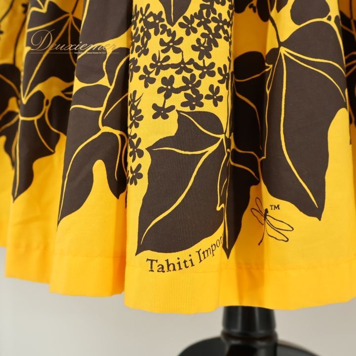 フラダンス 衣装 パウスカート イエロー系 タヒチインポーツ フラ ダンス 黄 シングル レッスン ハワイアン 花柄 TAHITI IMPORTS スミクロ アロハ 鮮やか 華やか 明るい ハワイアンプリント かわいい ブラック系