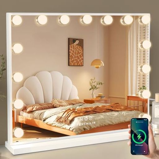 強化ガラス・スマホ充電ポート付き女優ミラー:FENCHILIN58x45cm女優鏡は強化ガラスを採用しているため、一般ガラスに比べて衝撃に強く、多少の衝撃や振動でも割れにくいです。万が一破損したとしても、破片が鋭利なものではなく細かい粒状になって割れるから災害時や事故の時にケガをしにくいです。ミラーの側面にUSB充電ポートを搭載されるため、メイクしながら、スマホ充電することもできます。ご注意:このモデルにはBluetooth機能は付属していません。