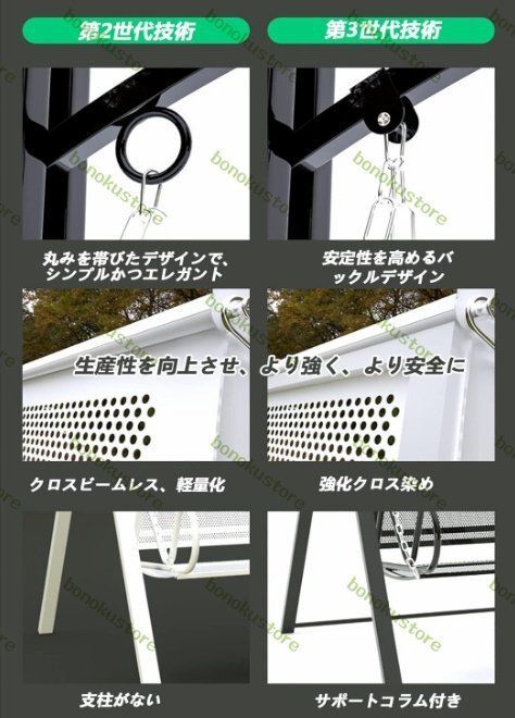 スイングチェアの:高品質の大型チェーンとフックにより安全なスイングが保証され、シートの位置を自由に調整できます。 セキュリティを改善します。 積載量:最大300 kg。 全天候対応,紫外線や雨から保護。屋外、庭、パティオに最適。安全保護:しっかりとした耐久性、滑らかな研磨、衣服に害を与えない、指を傷つけない滑らかなコーナーとエッジ、高品質のフィッティングを使用、250kgの荷重に耐えることができ、耐久性と長い耐用年数、厚くなったチューブの壁はより強く、耐久性があります。金属製フレーム構造:高硬度の高品質錬鉄素材、強化焼付塗装プロセス、強い柔軟性、環境保護、無毒、耐酸・耐アルカリ性、耐腐食性、耐摩耗性を持つ。:スイングチェアは2~3人が一緒に座って使用できます。 ポーチ、パティオ、または裏庭のどこにでも、日陰のあるプライベートな隠れ家を設置してください快適なガーデンベンチ:人間工学に基づいたシート、ベンチクッションは2人を収容でき、傾斜した背もたれは快適に背もたれを支え、滑らかなアームレストは座りをより快適にします。組み立てが簡単な金属製のワークチェア:高品質で耐久性のあるバルコニーベンチには必要な部品が含まれており、組み立てが簡単で迅速なので、中庭をすぐにリラックスできます。取り付けは簡??単、便利、迅速で、女性が個別に行うことができます。メンテナンスが簡単、木材チップ間の排水が簡単、表面コーティングが滑らか、メンテナンスが簡単。