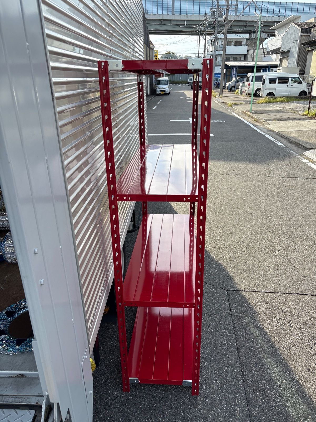 4段軽量スチールラック 鉄製 アイアン 赤 RED ガレージ 収納棚 鑑賞棚 屋外用 屋内用 倉庫前 値引きあり