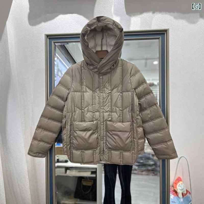 ダウンジャケット レディース 薄手 ショート丈 フード付き ポリエステル ゆったり ストレート 秋冬 カーキ ピンク グリーン オフホワイト