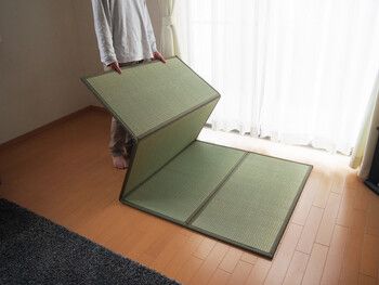 置き畳を縫製して繋げ、折りたためるい草マットレスとして登場。