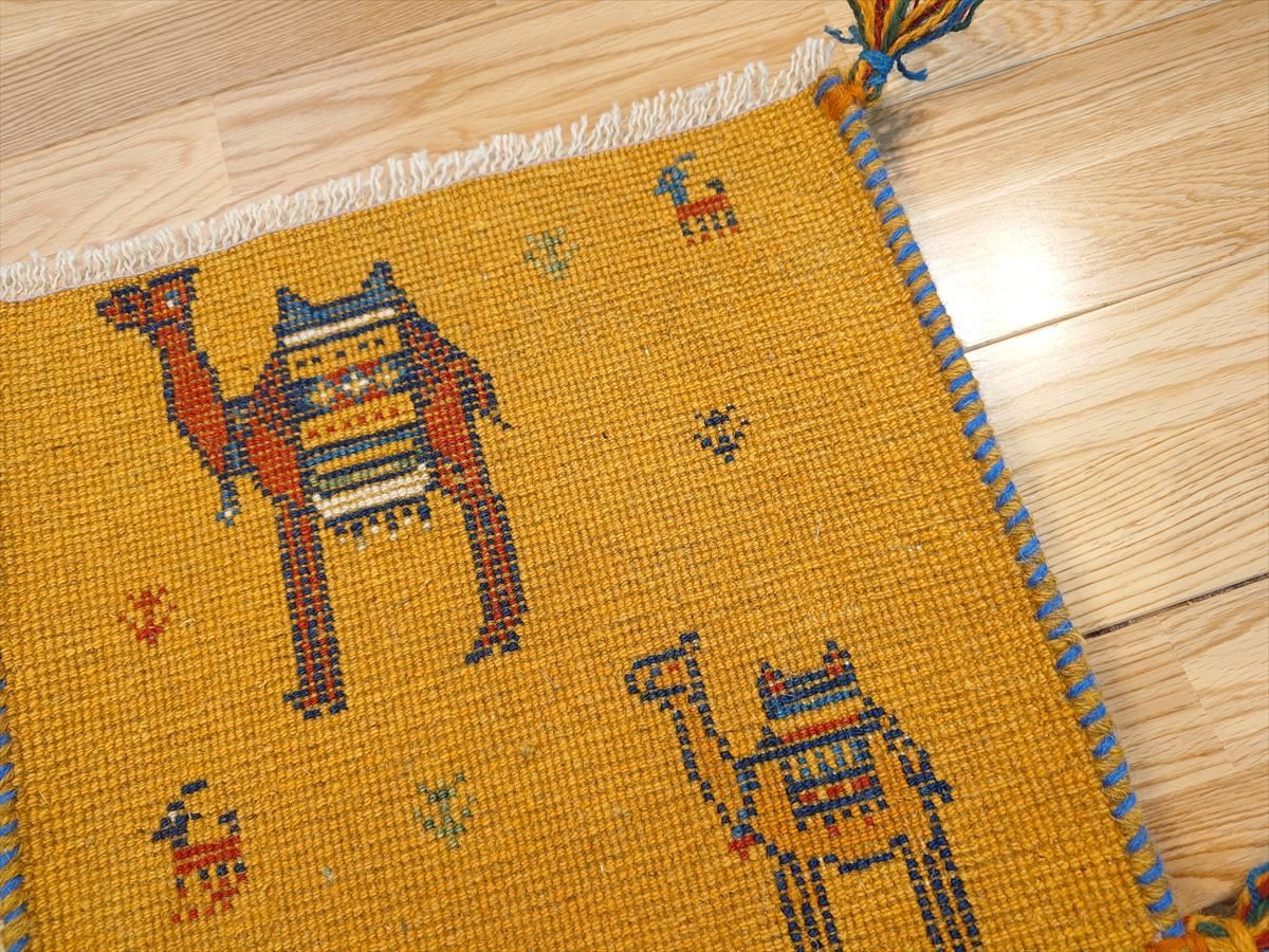 ペルシャ ギャッベ ミニマット ラグ 横40.5 x 38.5㎝ ラクダ 黄金色 T 9706